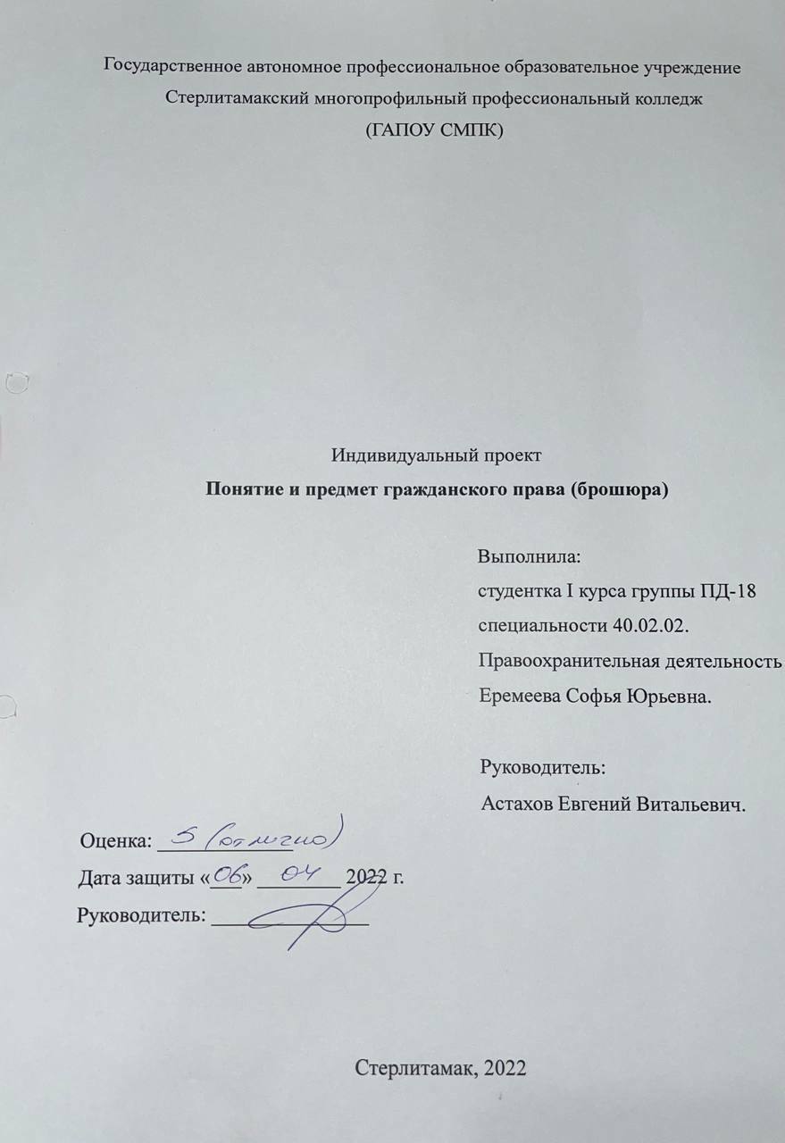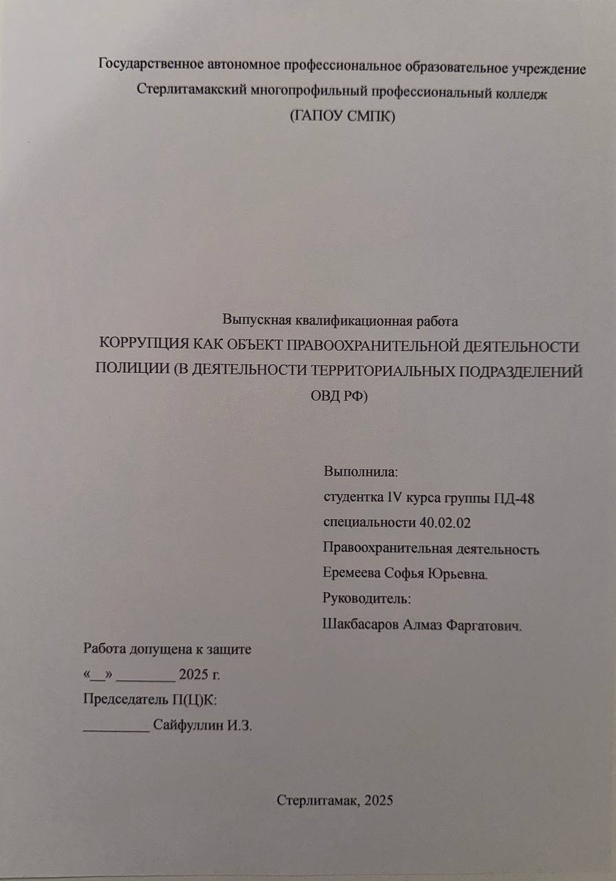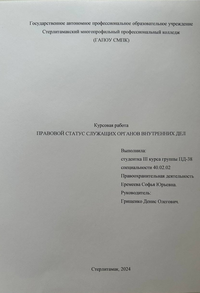 Я, Еремеева Софья Юрьевна, в 2021 году поступила в ГАПОУ СМПК. На данный момент являюсь студенткой четвертого курса специальности 40.02.02 Правоохранительная деятельность. Данная специальность юридического направления, которая даёт много возможностей и достаточно востребована.